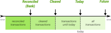 Cleared : includes reconciled + cleared transaction