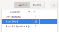 Create some categories for each of your vehicle. You can use categories or subcategories as well. Optionally you can set the default vehicle for the vehicle-cost report window from the wallet dialog.